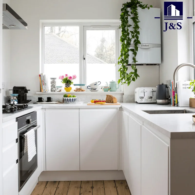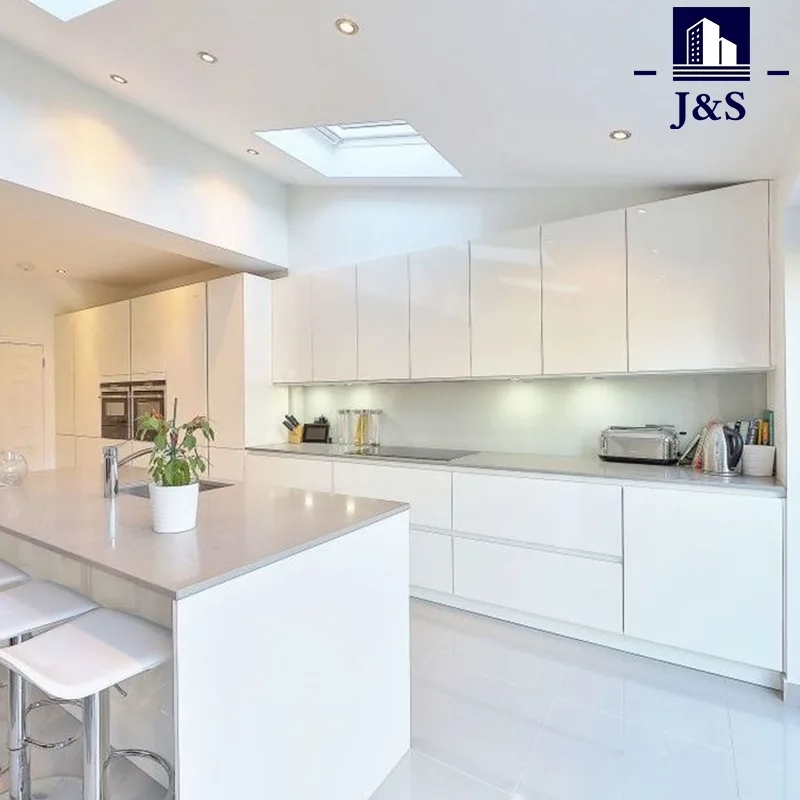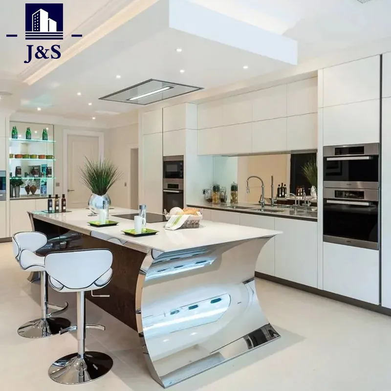 J&S کابینت آشپزخانه جدید مدرن سفید، درب سفید لاکی بالا، هزینه کم را عرضه می کند و کیفیت بادوام با مقاومت در برابر خش.